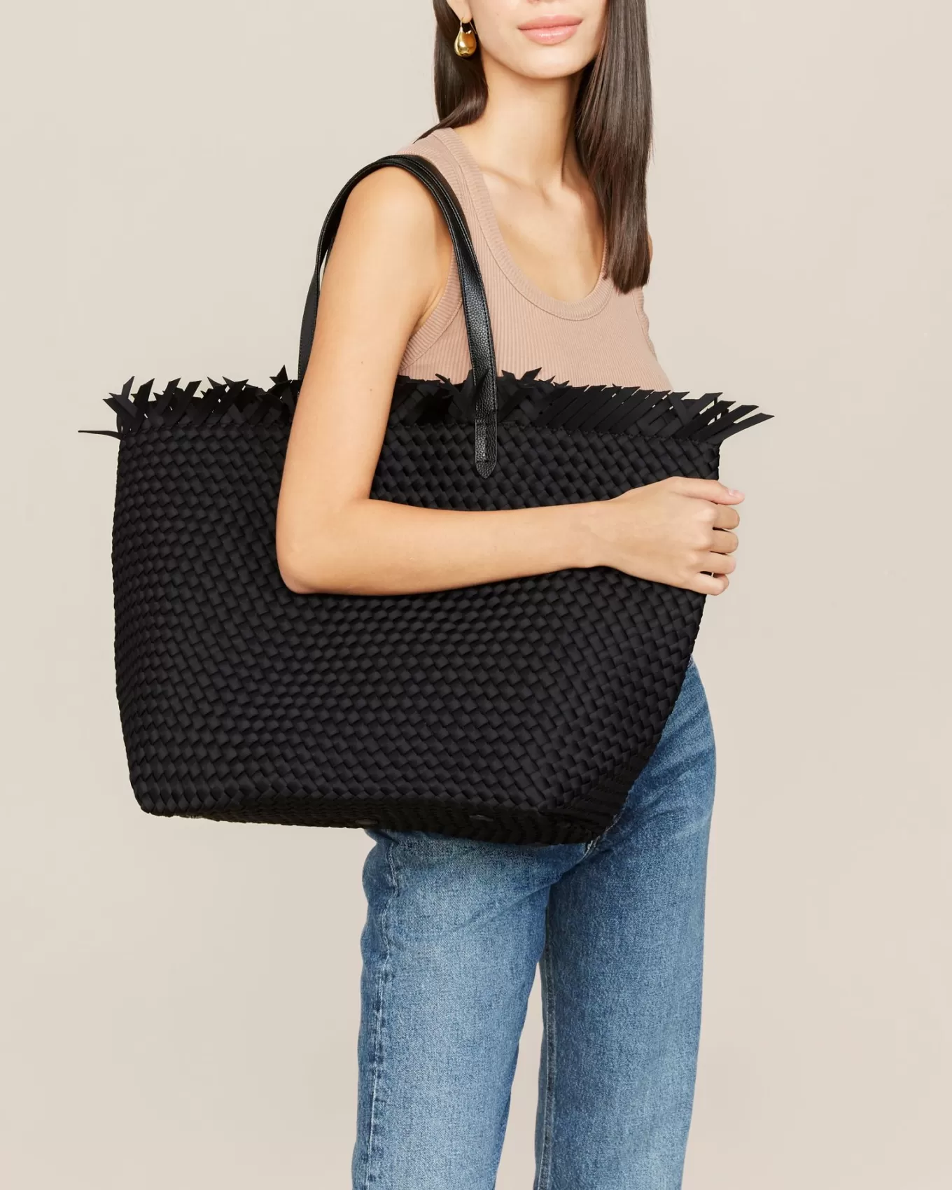 Vår Grunnlegger Sara’S Go-To Reiseveske, Havana, Har Alle Funksjonene Vi Elsker Med Jetsetter Large – Håndvevd Neopren, Veganske Skinnhåndtak, Innvendige Lommer, Tørt Nylonfôr Og Glidelåslukking – Men Med Friske Frynser. Perfekt For Tropiske Ferier Og Piknik I Parken.