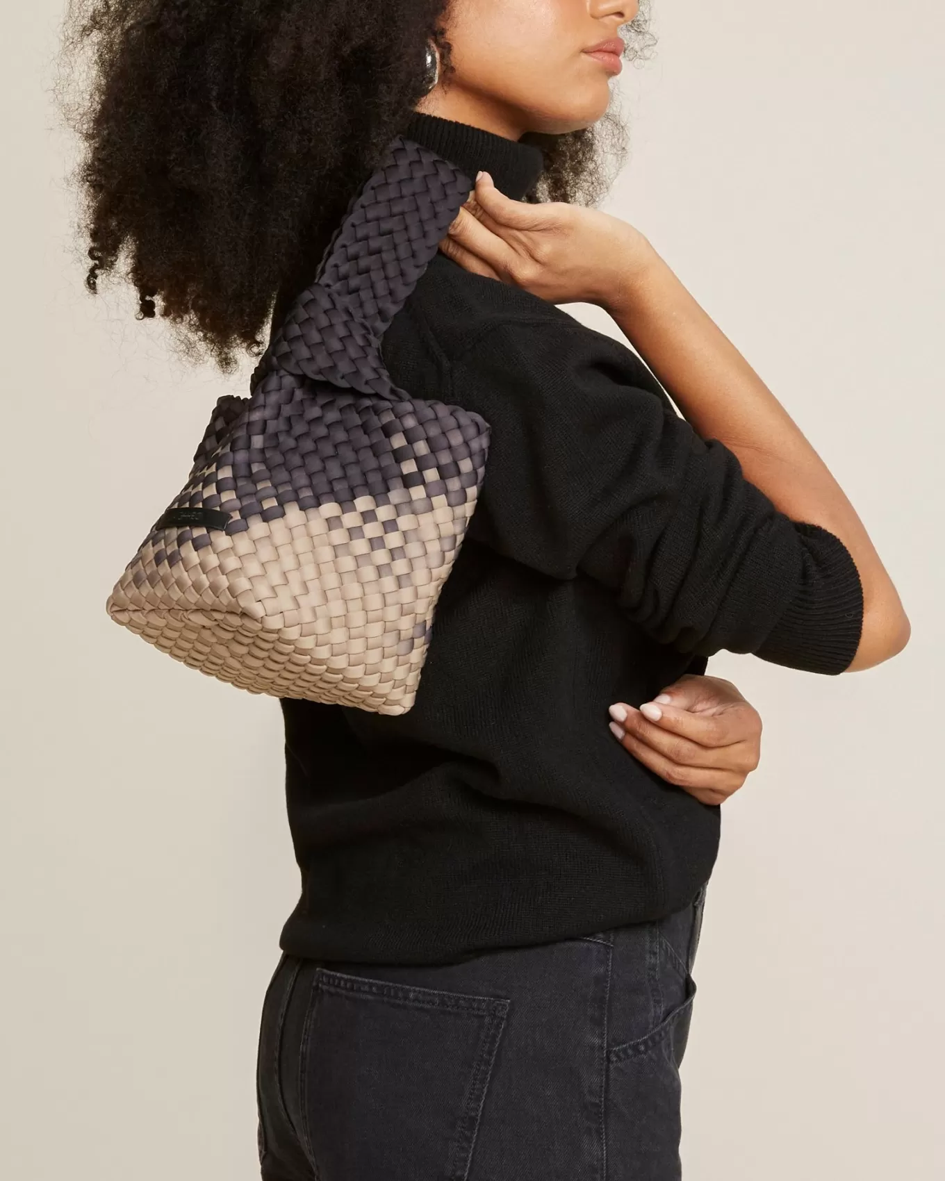 Graphic Ombre Kan Bare Være Vår Mest Spesielle Vev Til Nå: Individuelle Strimler Av Neopren Er Dyppefarget Til Den Perfekte Nyansen, Og Deretter Vevd For Hånd For Å Skape Et Gradientmønster I Koordinerende Farger Som Er Både Elegant Og Uventet.